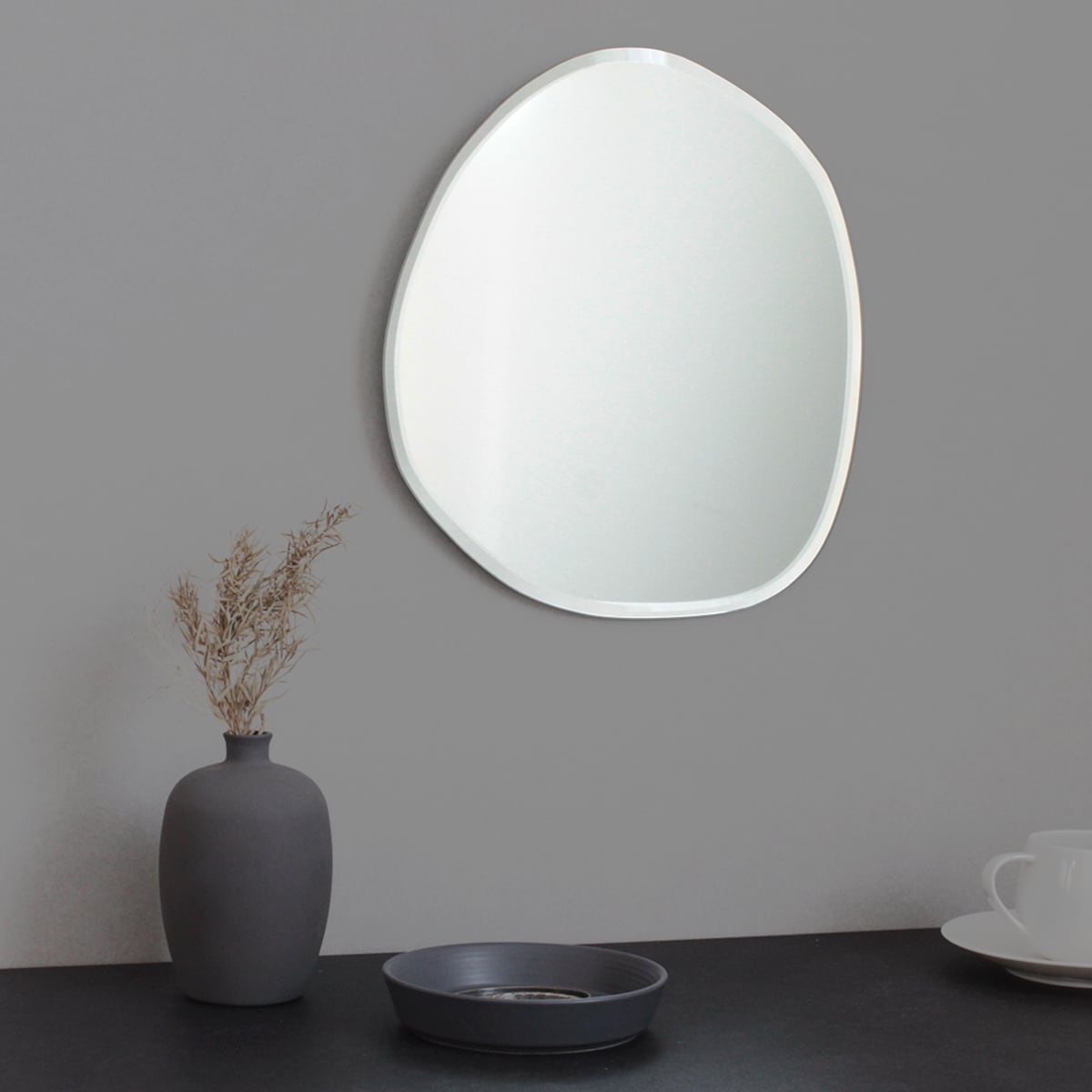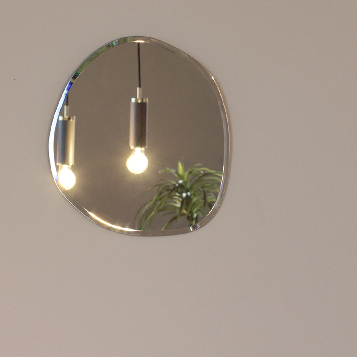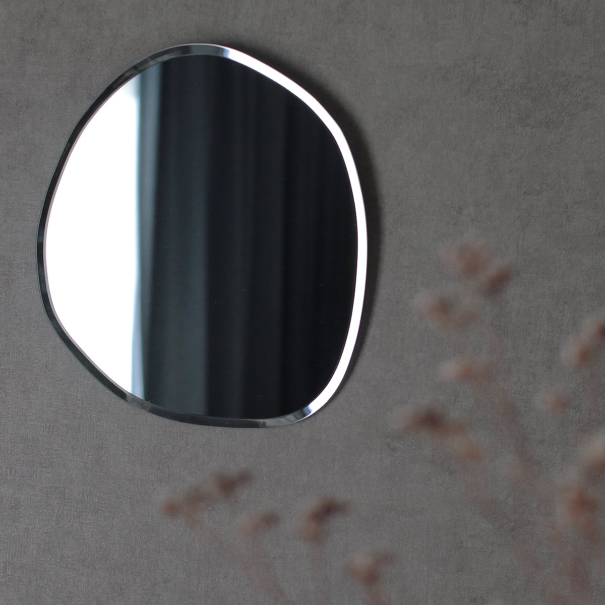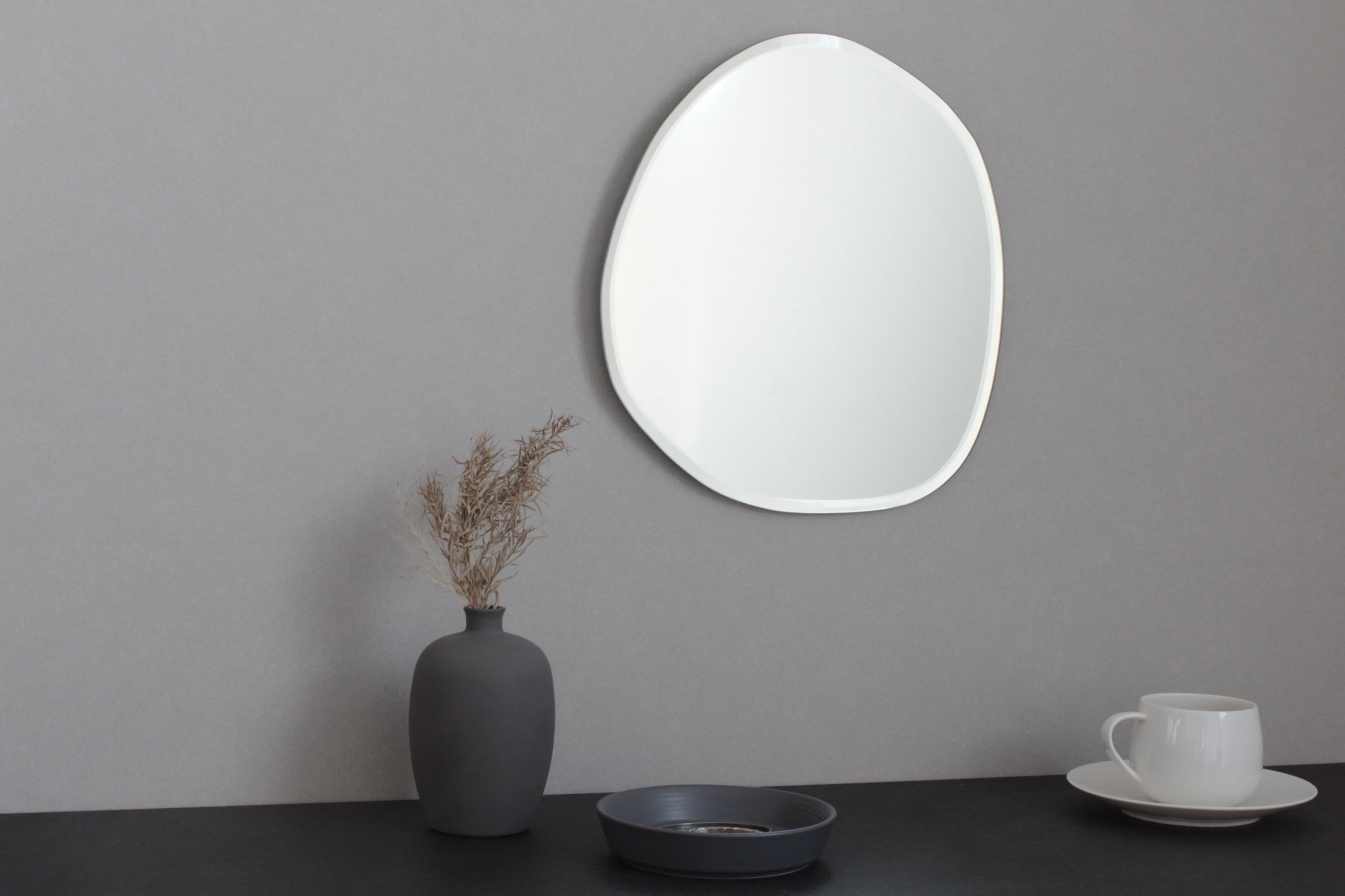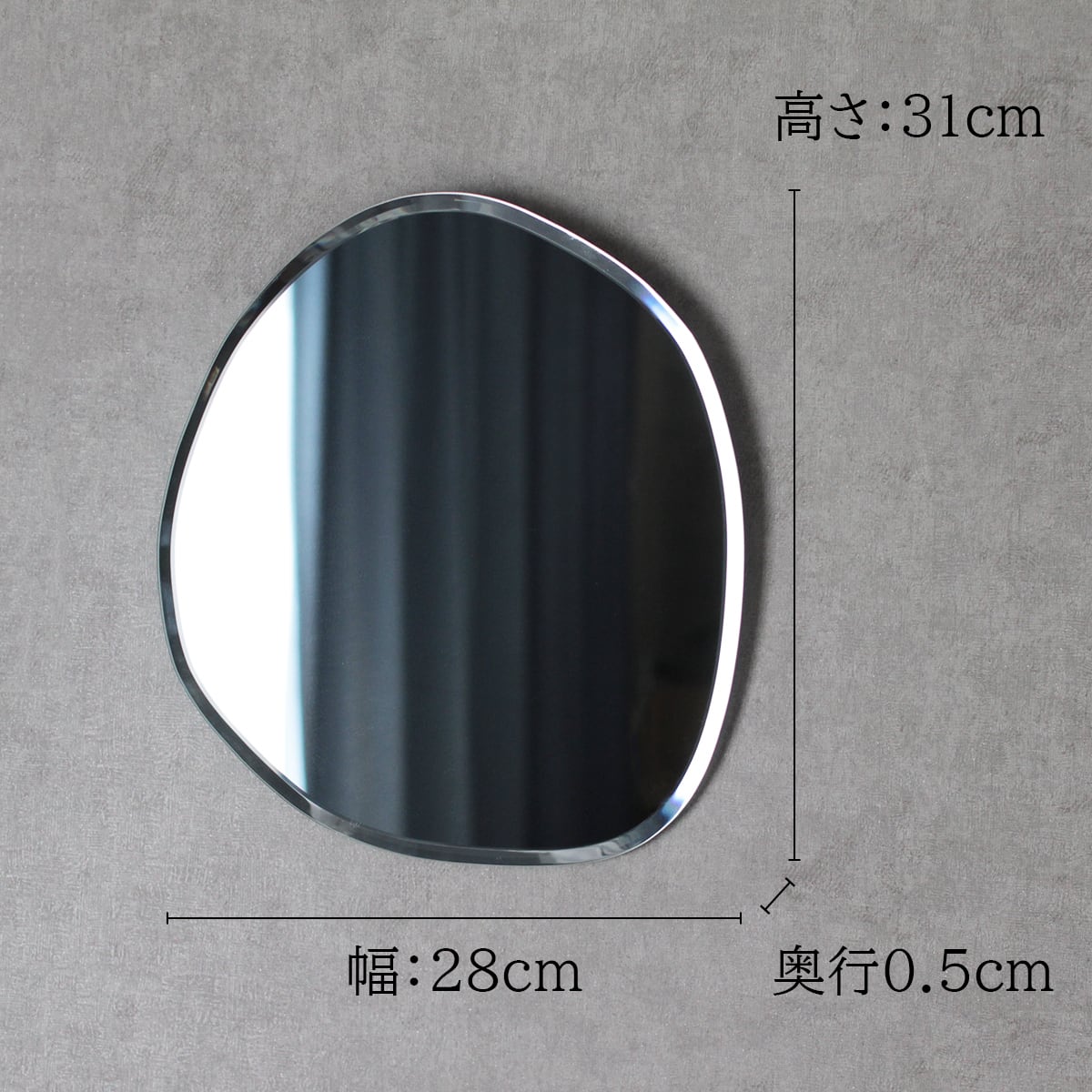ウェーブ状の曲線が上品で洗練された印象の壁掛けミラー。 ちょうどいいサイズ感が実用的で空間のインテリアにもなります。 フレームレスのフォルムが曲線の美しさを引き立たせ、 フチ部分は幅広く面取り加工をすることでキラキラと光の反射が生まれ、 高級感のあるエレガントな雰囲気に。 サイズ:W28cm×H31cm×D0.5cm 重量:800g 材質:ガラス ※ネジ、フック等は付属しておりません。 耐荷重をご確認の上、別途お買い求めください。