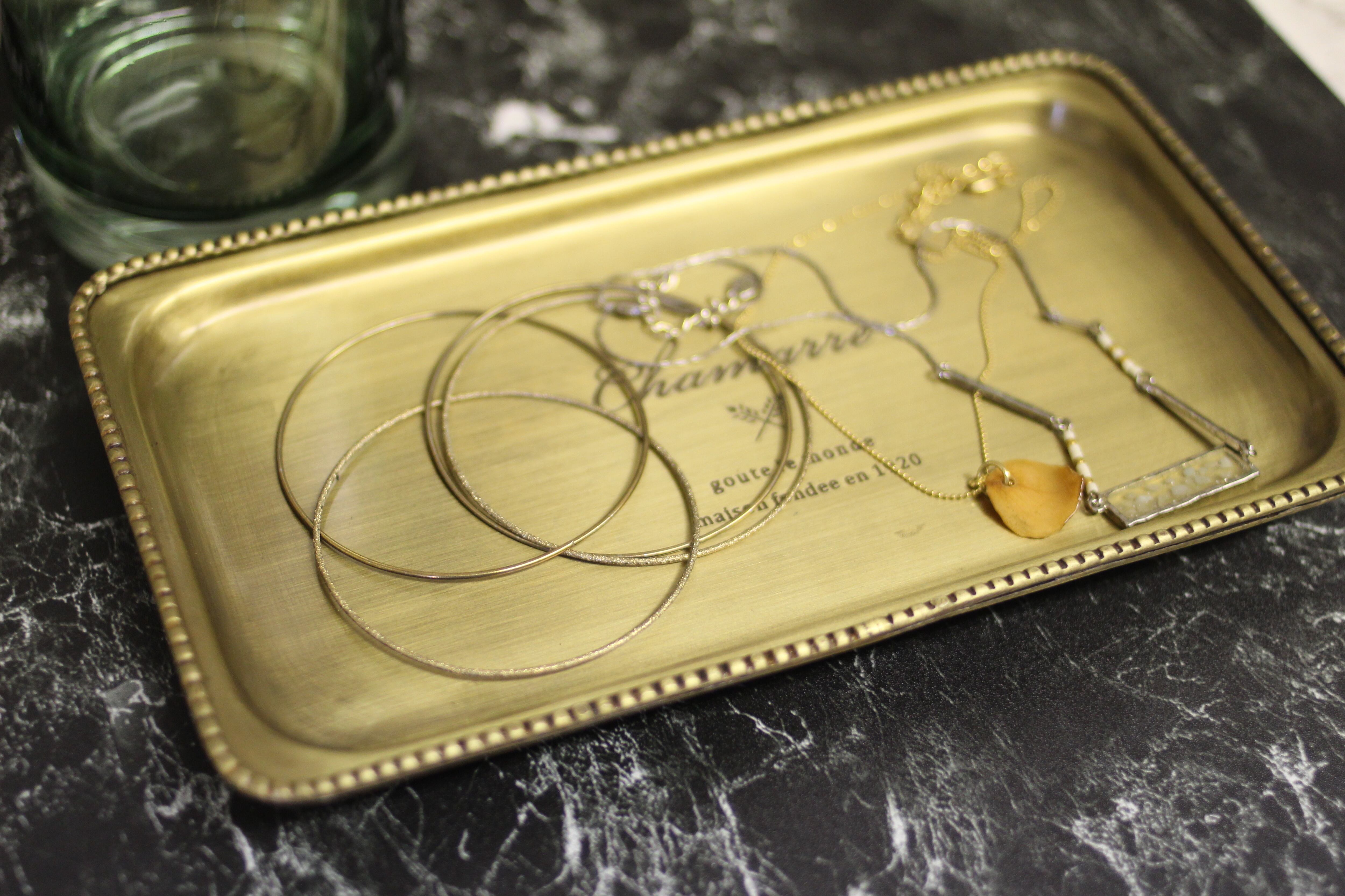 アンティークゴールド色のアイアン製トレイ。 アクセサリーや腕時計等の小物置きやお部屋のアクセントに。 トレイ レクトMサイズ size:W23×D13×H2cm material:アイアン ※アンティーク加工のため、色むらやキズに個体差があります。 商品の特性としてお楽しみください。